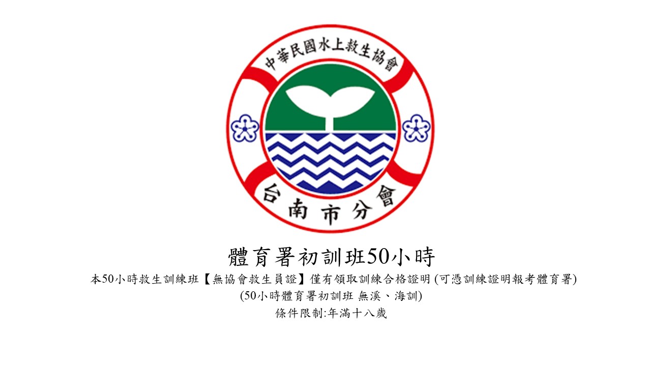 全台南唯一與體育署檢定同試場的協會 【入訓測驗】115/05/04(一) 18:00 【測驗地點】成功大學游泳池(台南市東區大學路1號) 【攜帶物品】泳具、報名表、紙和筆、 【測驗內容】蛙泳、捷泳各100公尺於時間內完成,男(300秒)女(360秒) 【附 件】報名表(請於開課前兩天填妥報名表) 【附 註】年滿十八歲未滿18歲請報名參加85小時班別謝謝 報名費6000元(含訓練費、場地費、合格證明文件費、保險費) 注意!注意!注意! 本50小時救生訓練班,【無協會救生員證】僅有領取訓練合格證明(可憑訓練證明報考體育署) (50小時體育署專班 沒有溪訓海訓) 條件限制:年滿十八歲【未滿18歲者請報名參加85小時班別】謝謝